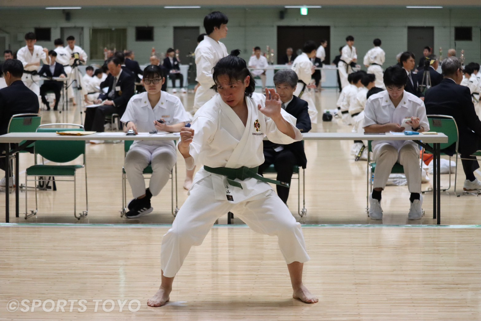 単独有段の部に初出場した橋本(営3)は、予選での演武について「今までで一番いい演武だった」と振り返る。今年3月に初段の昇級試験に合格し、念願の黒帯を締めての大会出場となった橋本は、演武に難易度の高い紅卍拳(こうまんじけん)などを取り入れ、新たな技に挑戦。鋭く素早い動きと迫力満点の演武を披露したが、本選には届かず。自身の課題については、体が力み動きにしなやかな綺麗さが出ないとコメント。「迫力満点な演武で、綺麗な演武も目指してはいるが、私の長所を生かした迫力満点で、見る人を魅了する演武を目指したい」と目標を語った。