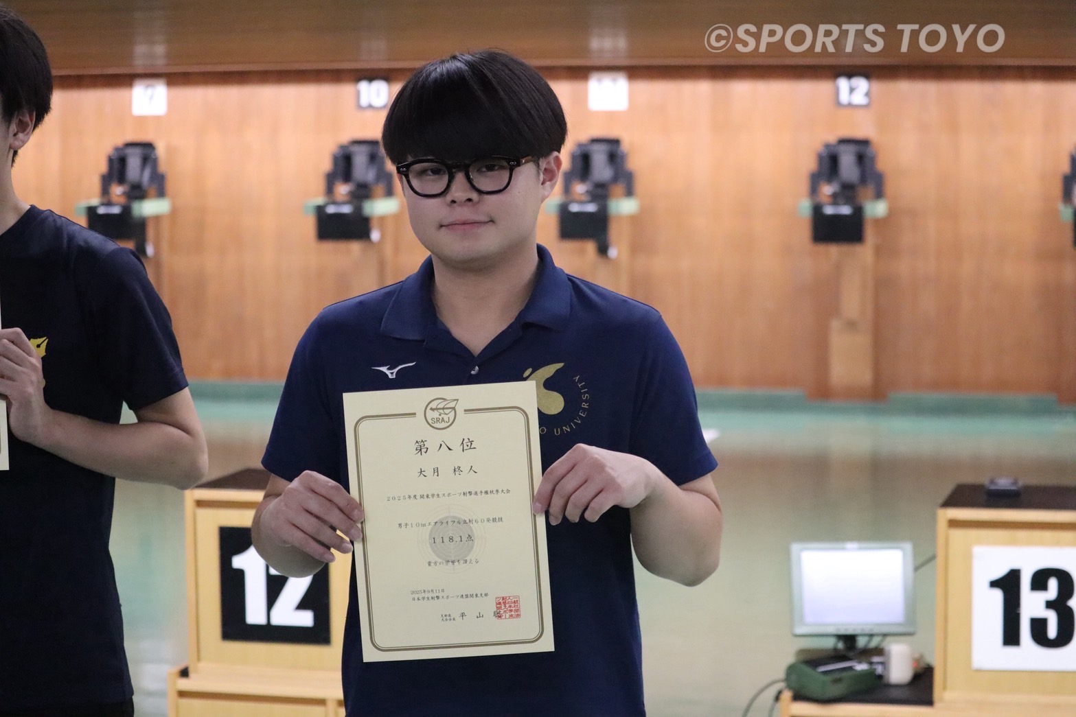 「自信があった」と語ったRPRMWでは本選9位とファイナルを逃してしまい、悔しさを抱きながら迎えたARM60。冷静さと安定感のある射撃で本選619.7点で1位通過を果たすと念願のファイナルへ。学生連盟の選手らとともに賑やかな雰囲気の中ファイナルに臨んだ大月だったが、点数が伸びず結果は8位にとどまった。「緊張はしなかった。もう少し練習したい」と自身の反省点をあげながらも、「1位はインカレ(=全日本学生スポーツ射撃選手権大会)にお預け」と笑顔を見せる場面もあり、今大会の結果を前向きな姿勢をのぞかせた。さらに大会最終日に行われたR3PMでは好戦を見せ、こちらもファイナル進出から8位入賞。2種目ともに賞状を手にした。