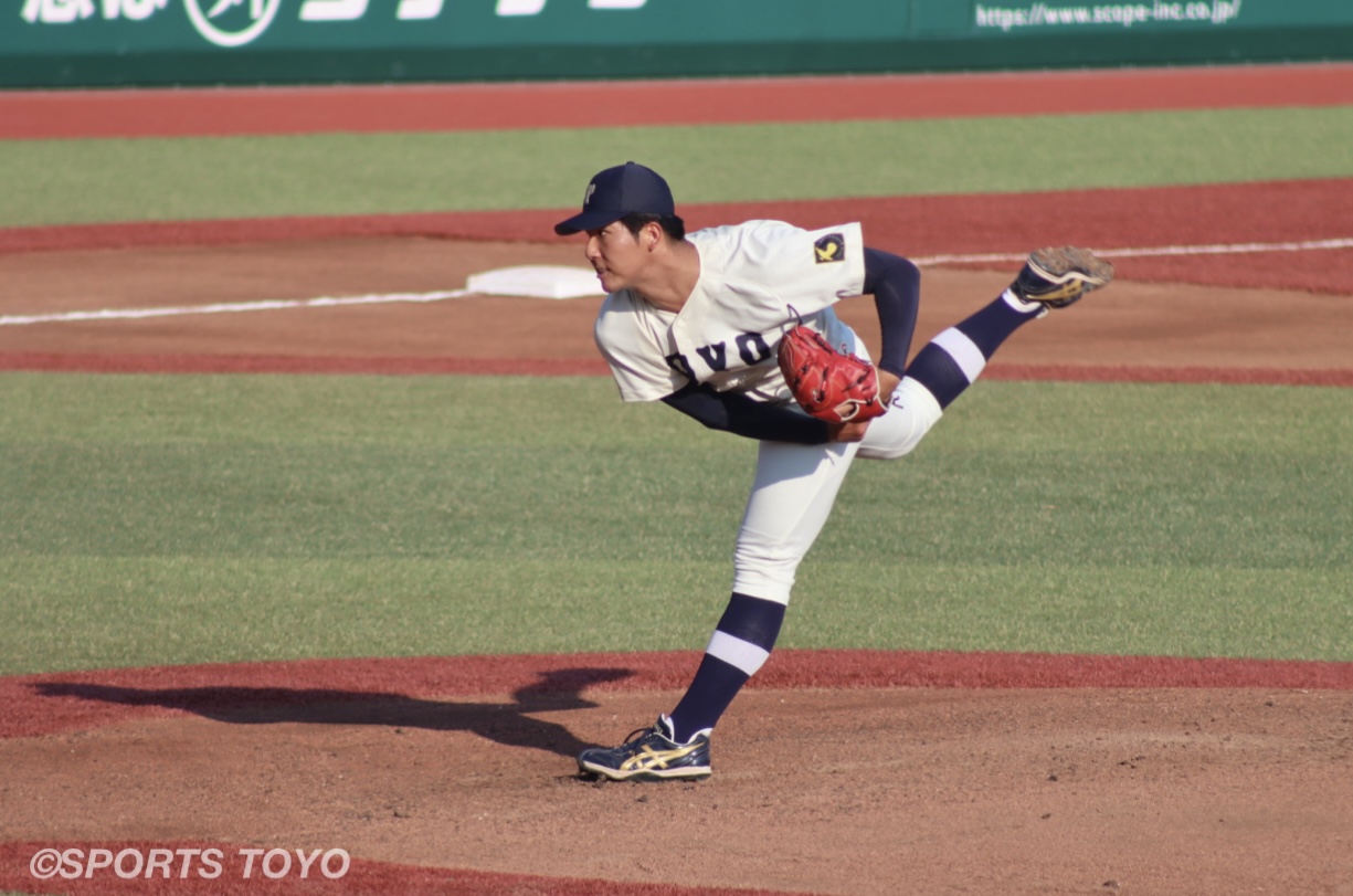東洋大・先発は、エース島田(総4=木更津総合)。「とにかく楽しむ」ことをテーマに力強い投球を見せる。打撃に課題が残る東洋大にとって、島田の生き生きとした立ち振る舞いはチームの大きな原動力となっていた。一回、二回と安打を打たれているもののどちらも無失点で抑えた。
