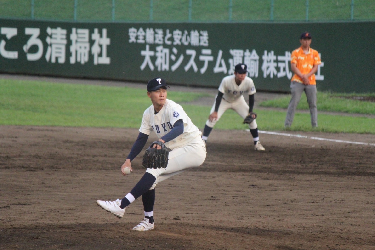 一回表、先頭から三振を取り、続く打者に投ゴロを打たれ出塁を許すが、黒岩(健=前橋育英)が二塁で走者を刺し二死を奪う。最後は遊ゴロでスリーアウト。出だし好調の走りだしで上位打線を抑えた。