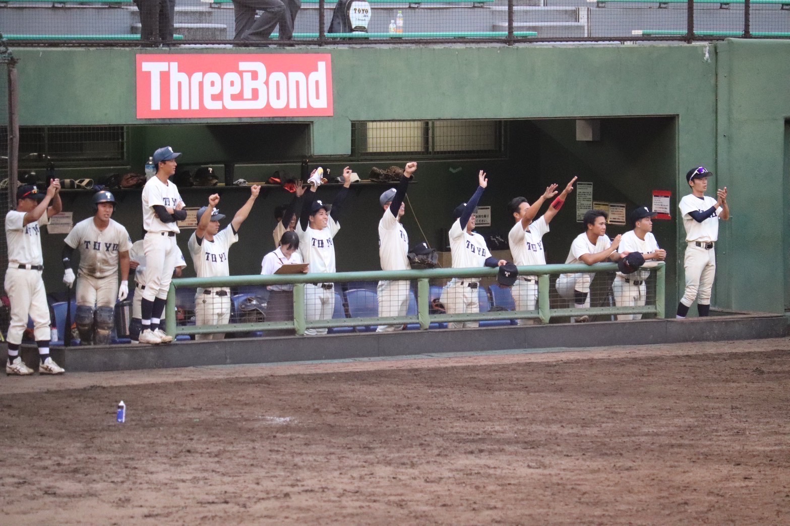 前半戦を終えて全員でミーティングを行い春までの東洋の最大の武器は声でした。しかし今リーグはベンチ入りの下級生が多い為、チーム全体で声だけは負けないようにしていこうと話しました。相手のMAXが149キロの剛腕だったこともあり僅差の勝負だと予想し、タイブレークまで持ち込んだが踏ん張れませんでした。