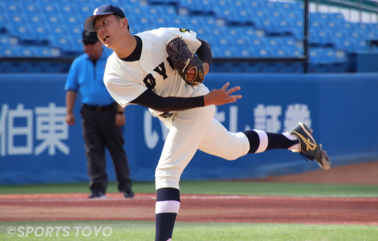 大坪は立ち上がり、いきなり1死三塁のピンチを背負う。絶対に先制点を渡したくない東洋大は全身守備のシフトをひいた。一方の國學大は4番・立花がスクイズを仕掛けるも、大坪が冷静に処理して2死。最後は見逃し三振に仕留め、力強く声をあげた。