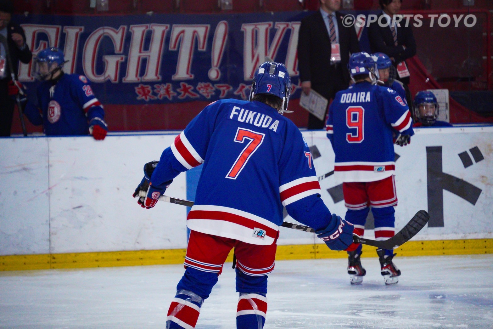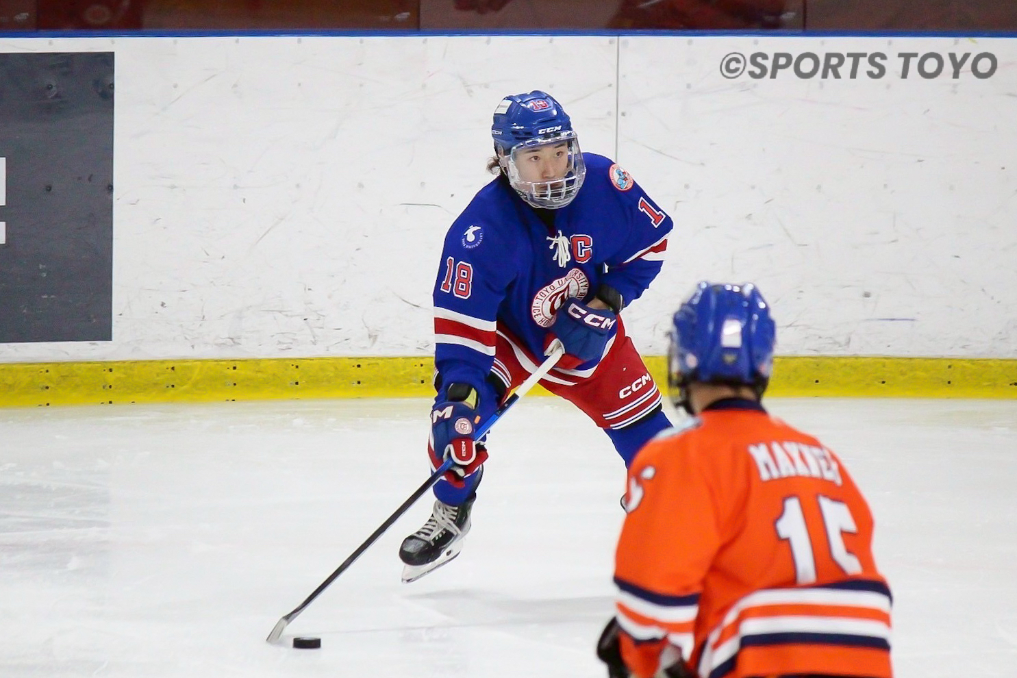 第1ピリオドは終始東洋大が支配。14分にFW森田(社4=駒大苫小牧)がパワープレーから先制点を奪うと、17分には復帰したDF福田が追加点。2-0とリードを広げ、試合の流れを完全に引き寄せた。