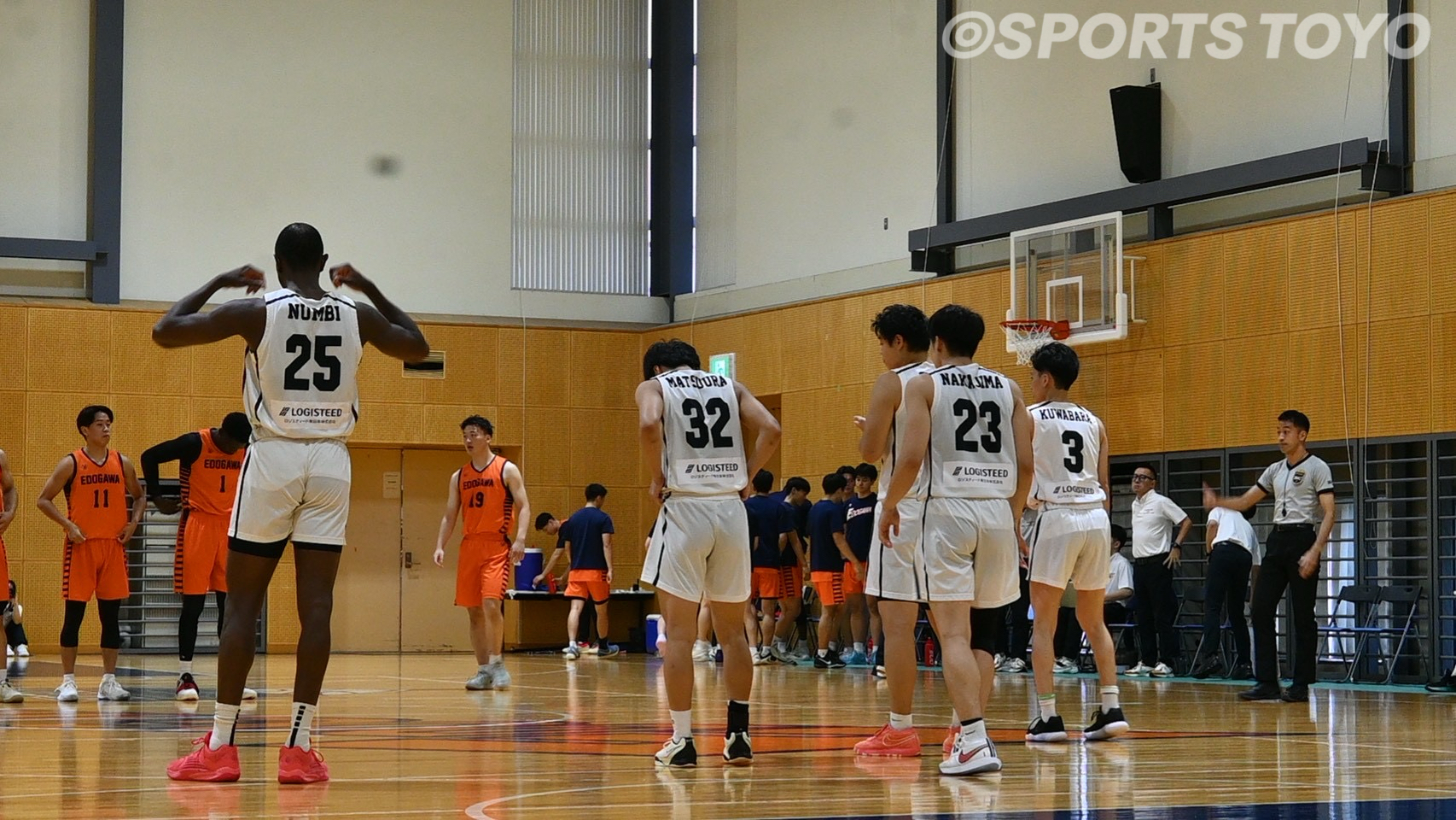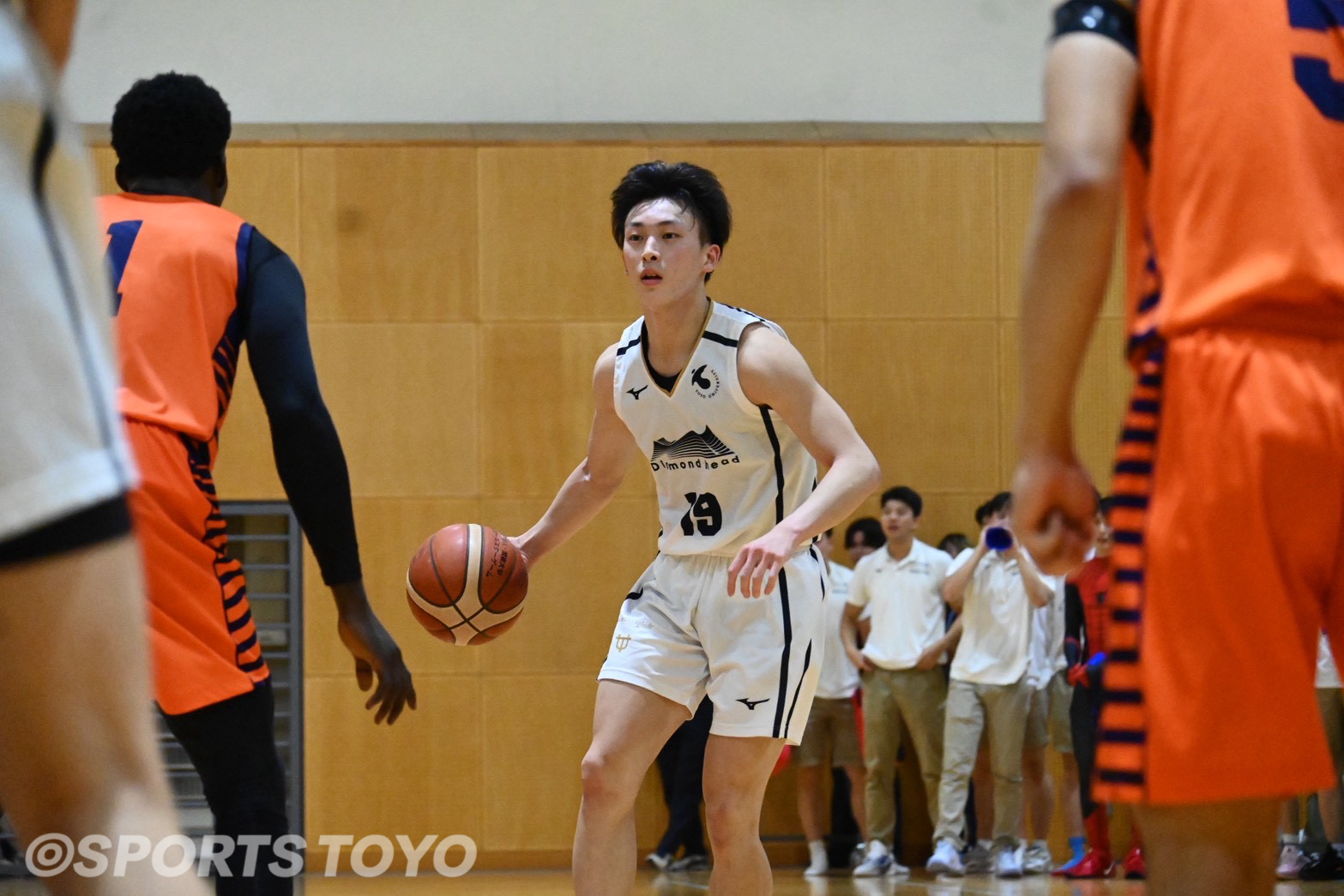 1点ビハインドで迎えた第2Q、東洋大はディフェンスを立て直し、相手の速い展開を抑え、リバウンドで主導権を奪い始める。オフェンスでは粘り強くボールを回し、霜越洸太郎(栄3=藤枝明誠)の得点で同点に持ち込み、36-36の同点で前半を終え勝負の後半へ。