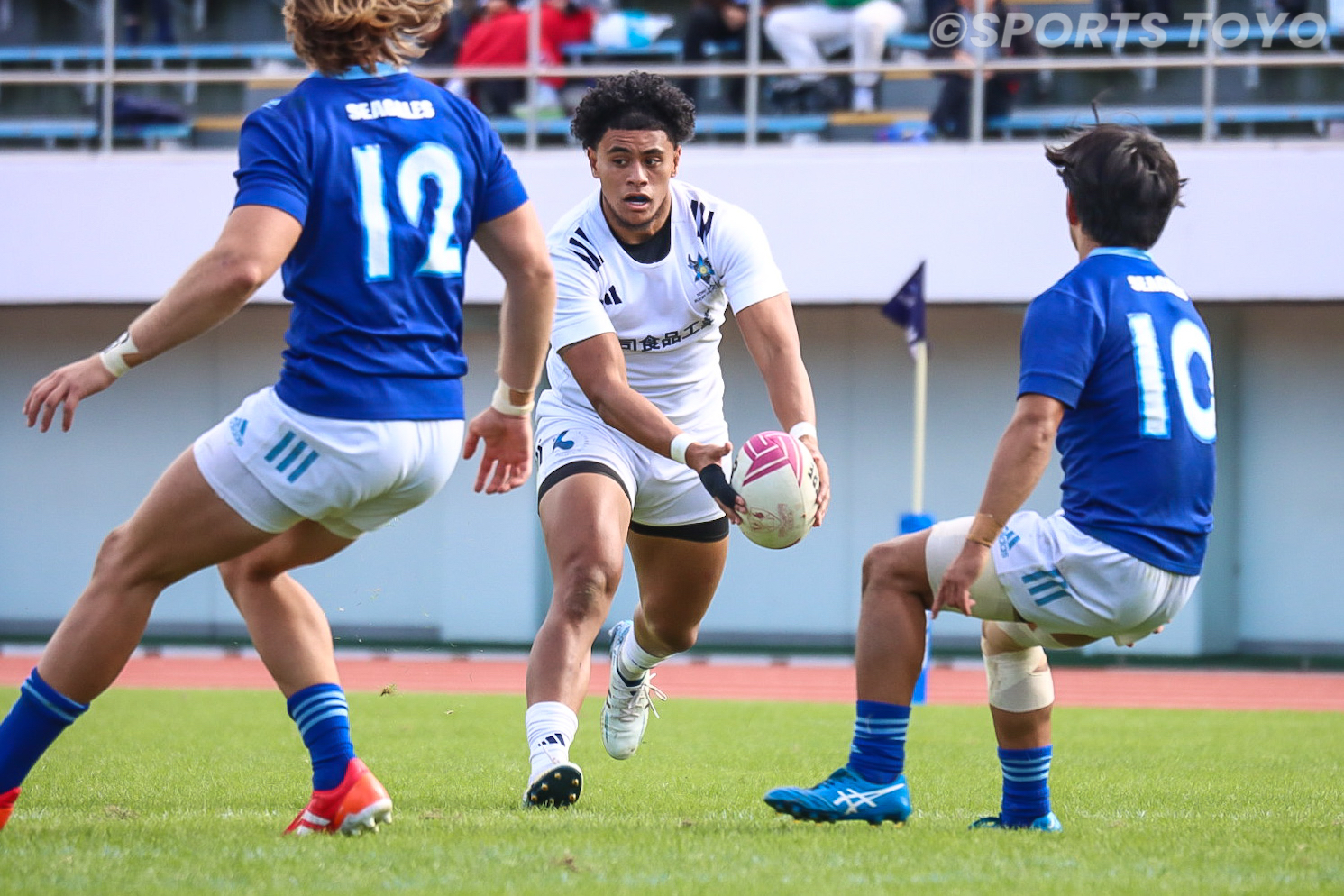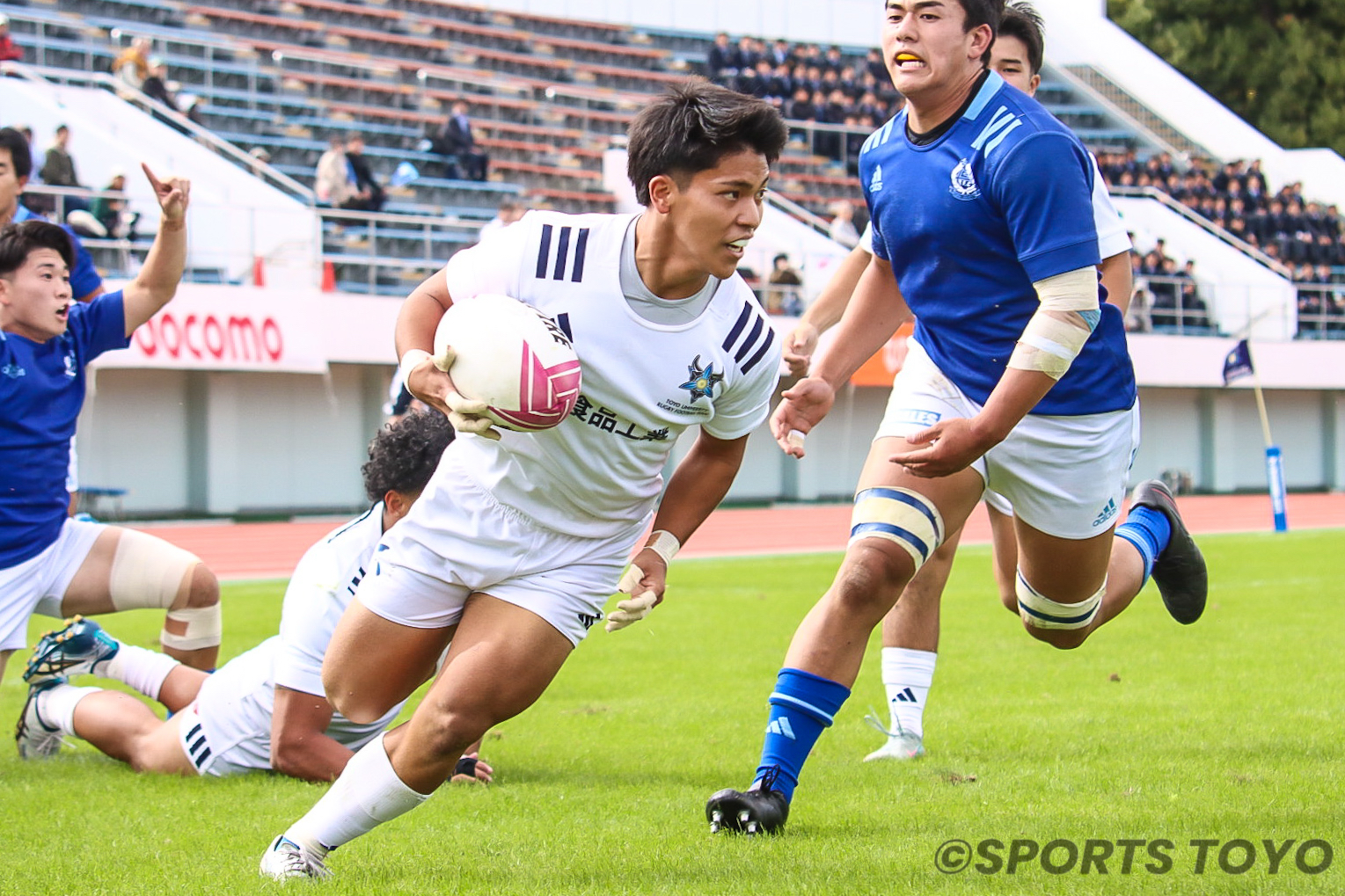 44分、こう着していた状況からHO(フッカー)岩崎ヴィージェー純(1年)がゲインを見せ、WTB浅尾至音(3年)にボールが渡る。タックルを受けながらもインゴールに楕円球を沈めたが、コンバージョンは右に逸れ、逆転には至らなかった。