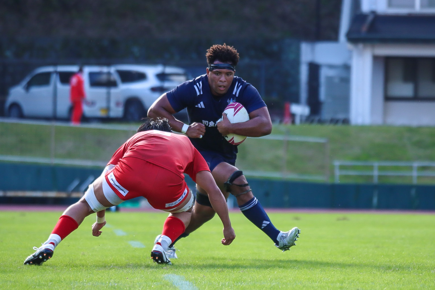 注目はWTB山田真生(2年)。前節では前半に1本トライを決め、ボールを持てば強い推進力でチームに勢いを与えるプレイヤーである。攻撃のテンポを上げることができれば爆発力を見せる大東大。アウトサイドでのラインブレイクから減速せず、ギアを上げてFWにつなぐことができるかがトライへの活路になる。