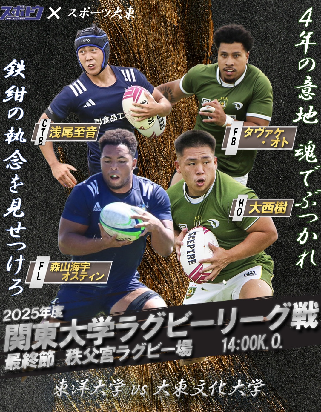 過去の対戦成績を見ると、東洋大が1部に復帰した2022年度以降、大東大が3勝2敗。リーグ戦に限れば、東洋大に3勝0敗と勝ち越している。しかし、今年度の春季交流大会では東洋大が75-17で大東大を下しており、力の差を見せつけた形だ。