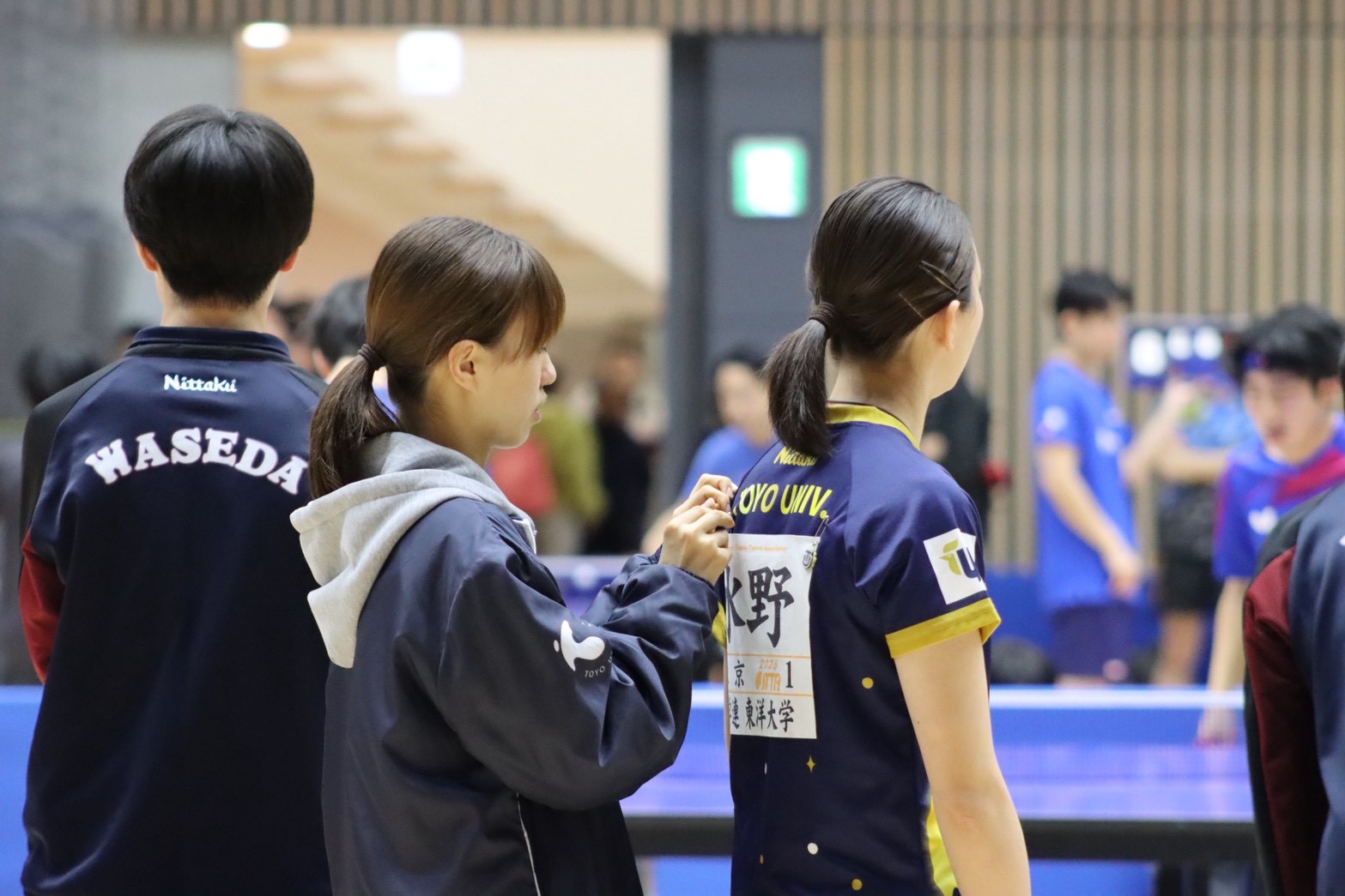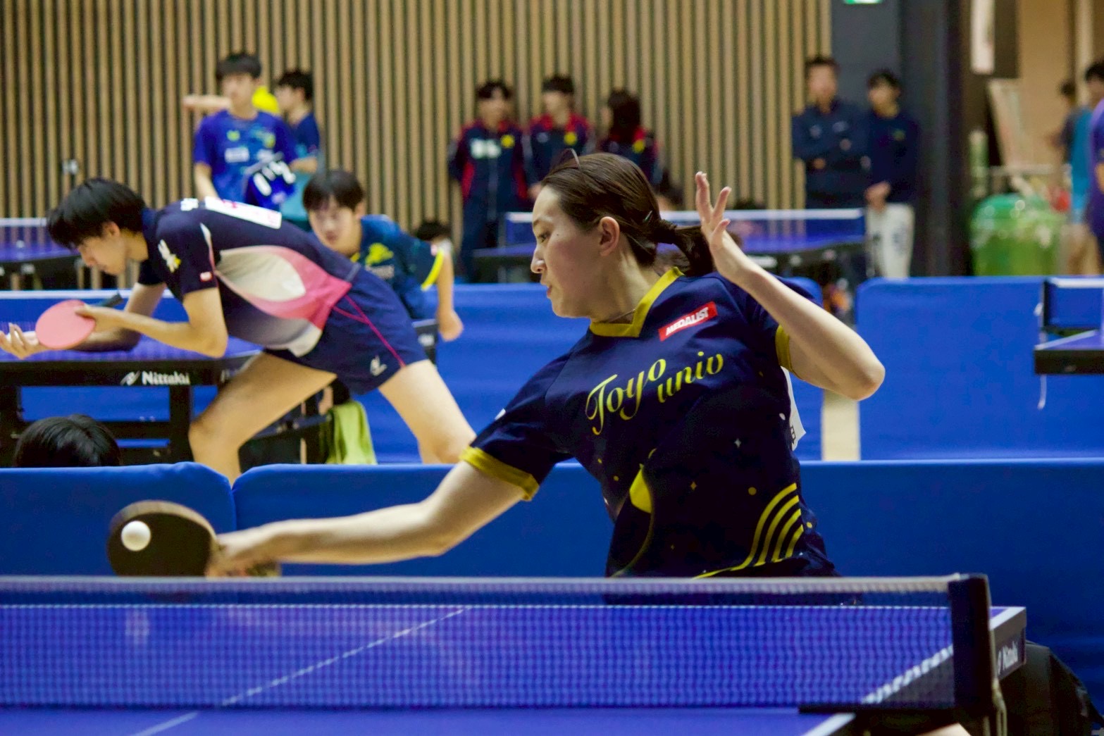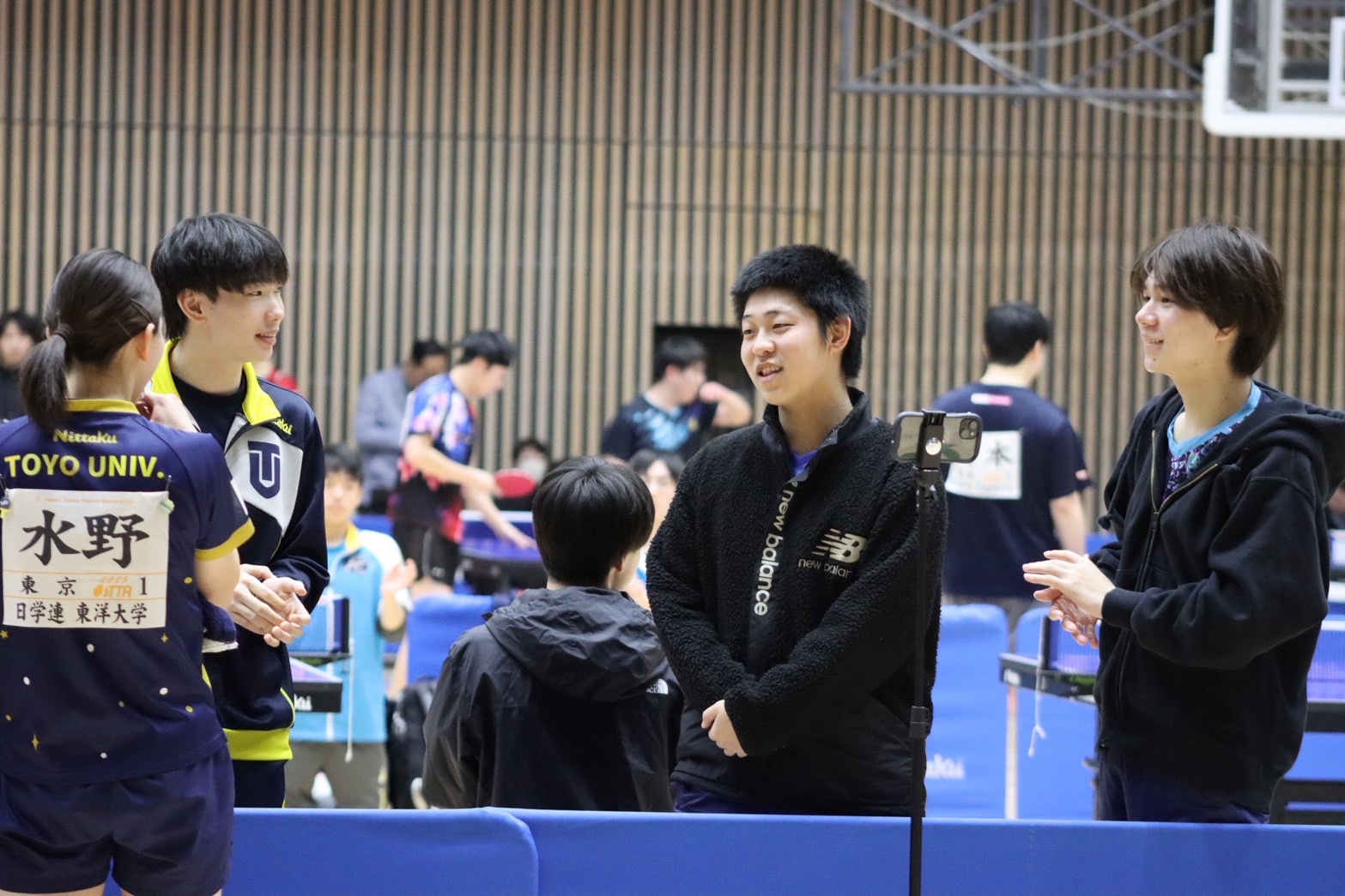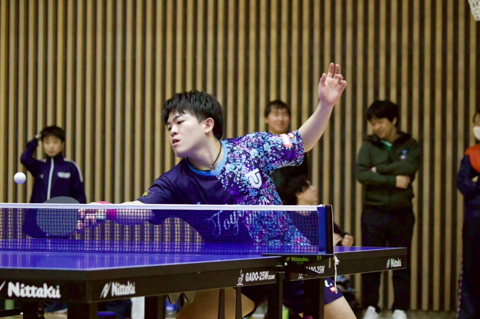 11月22日、日野市立南平体育館で第126回東京卓球新人優勝大会が行われた。東洋大からは男子7名、女子1名が出場し、男子シングルス(22歳以下)で天野史隆(済1=静岡学園)が3位、女子シングルスで水野瑞希(スポ1=明徳義塾)が優勝を収めた。今大会で抱いた確かな感覚を自信に、この冬の鍛錬を経て大躍進に期待する。